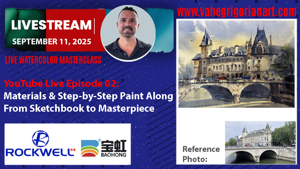 Join Vahe for an inspiring watercolor class! Watch as he creates a Parisian Watercolor painting from a reference and transforms it into a beautiful finished painting in 40 min real time . Perfect for artists at all levels eager to elevate their skills and bring their ideas to life!