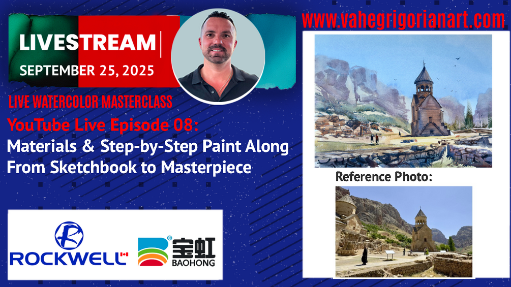 Join Vahe for an inspiring watercolor class! Watch as he transforms this reference photo into a beautiful Venetian scene. Perfect for artists of all levels eager to refine their skills and bring their ideas to life!