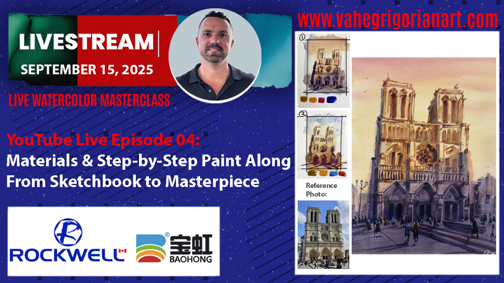 Join Vahe for an inspiring watercolor class! Watch as he transforms this reference photo into a beautiful Venetian scene. Perfect for artists of all levels eager to refine their skills and bring their ideas to life!